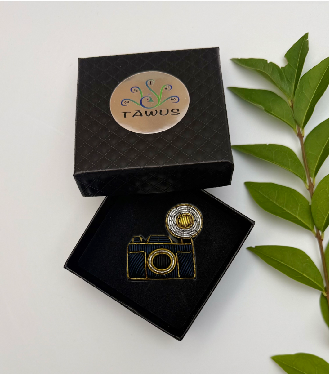 Affichez votre passion pour la photographie avec cette broche Appareil Photo entièrement brodée à la main. Symbole de créativité, de souvenirs et d’évasion, elle apporte une touche artistique et rétro à vos tenues.