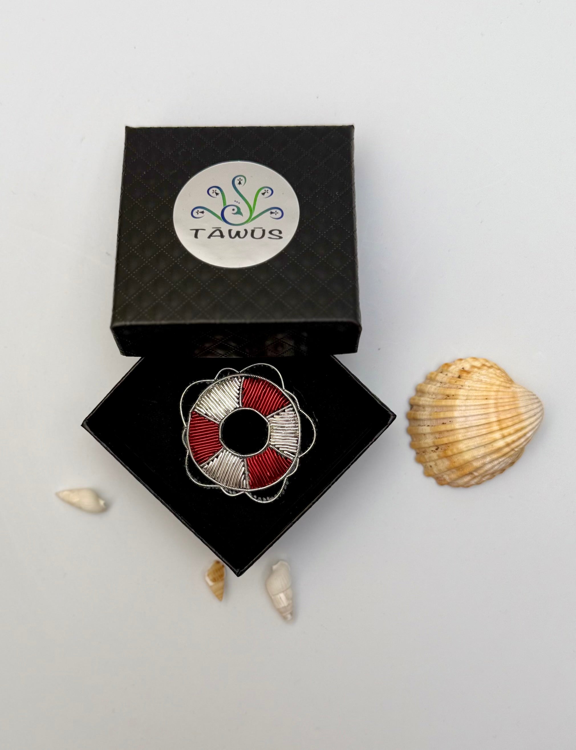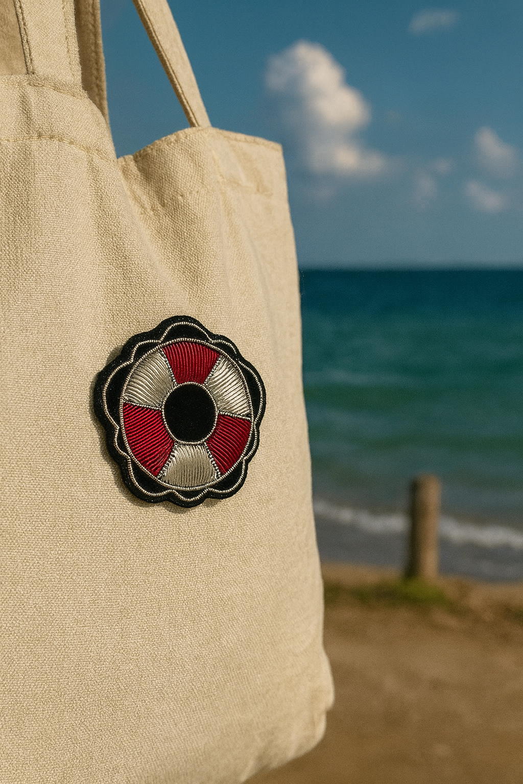 Apportez une touche marine authentique à vos tenues avec cette broche bouée maritime entièrement brodée à la main. Symbole de protection, de voyage et d’appel du large, elle évoque l’océan et l’aventure.
